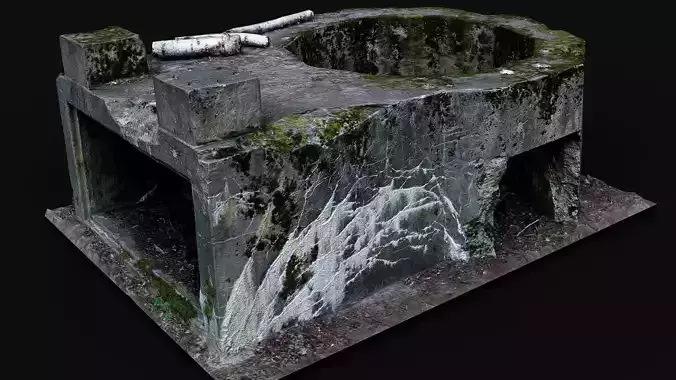 ww2 destroyed bunker pillbox PBR photogrammetry Low-poly 3D model