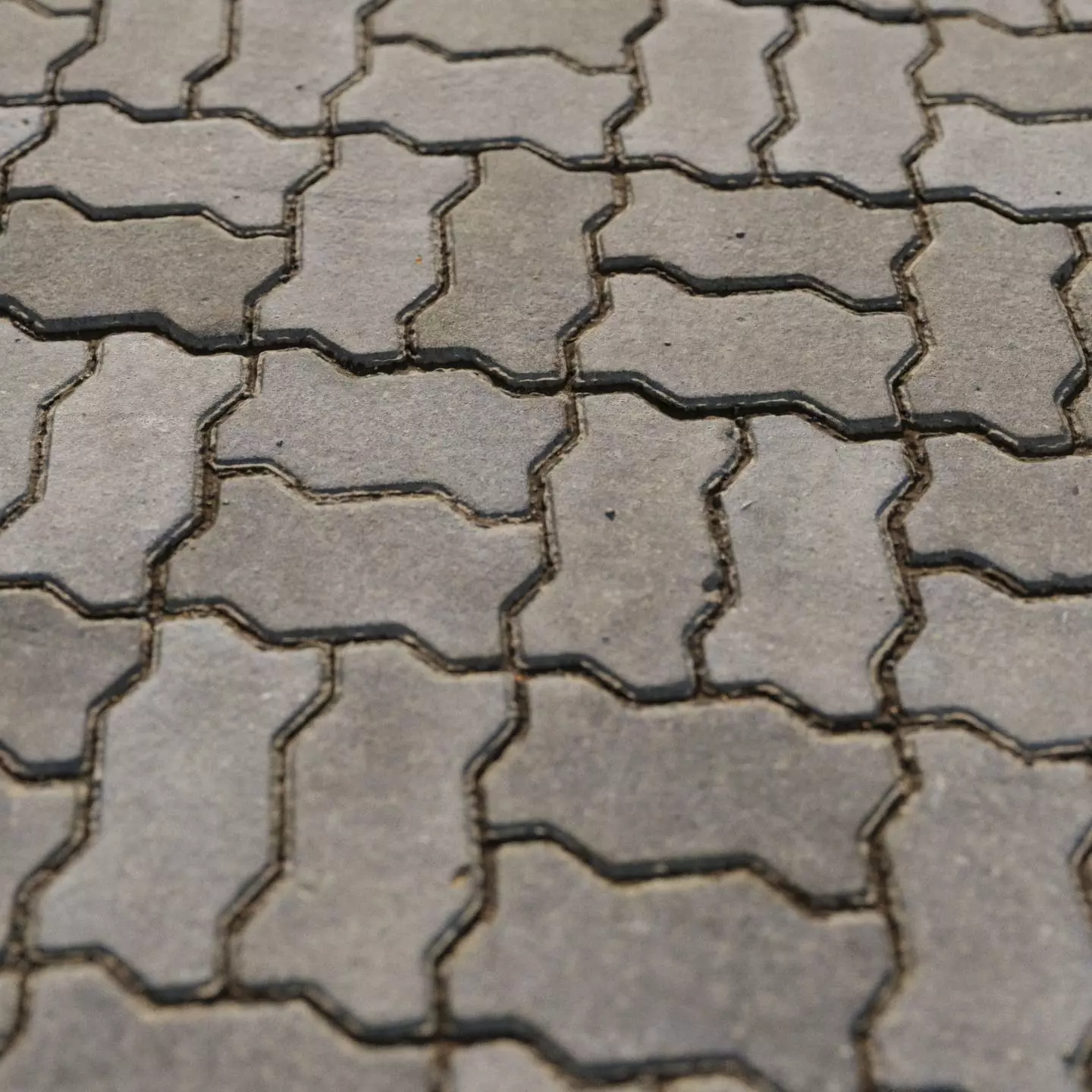 Standard urban paving stones in the form of zig-zag. It is made of concrete.