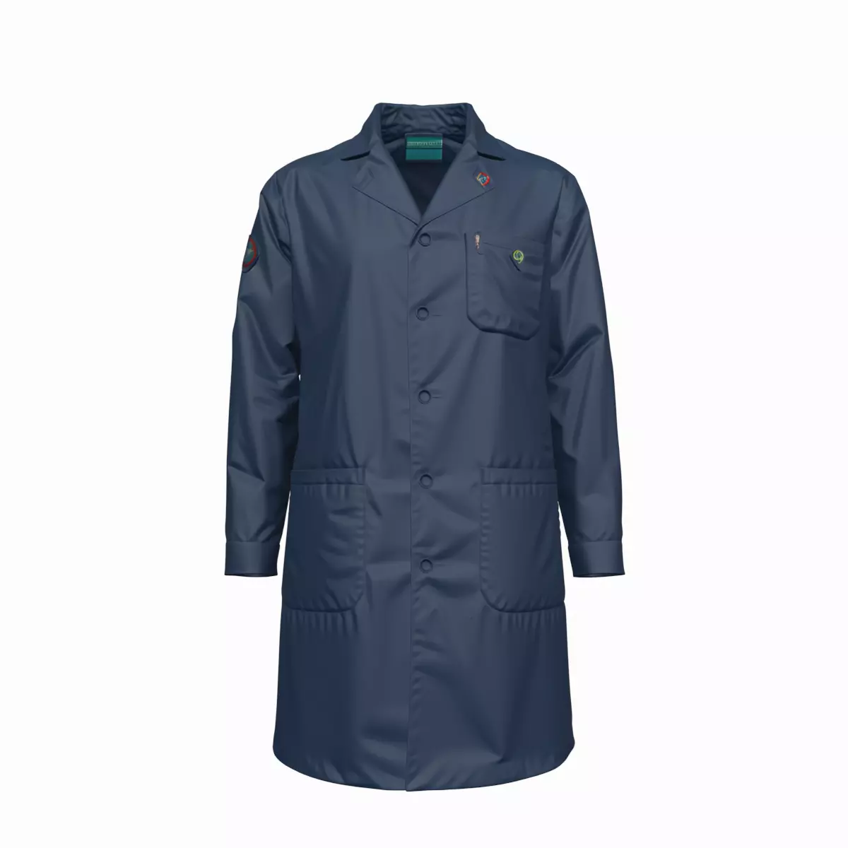 Detailed and realistic 3D model of a medical lab coat featuring a crisp button front, multiple functional pockets, and a practical back vent for enhanced comfort. The design includes precise stitching, a tailored fit, and a clean, professional aesthetic, making it ideal for medical simulations, animations, or virtual training environments. Perfect for adding authenticity to healthcare or scientific visualizations.