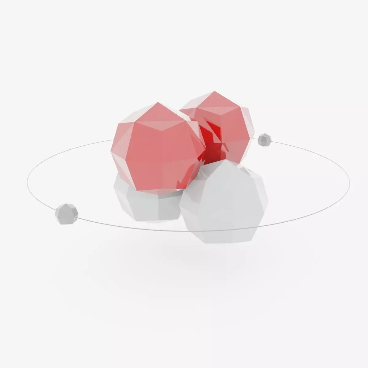 A helium atom made of 3 parts. Play with it, spin it, squeeze it......be sure not to split it.