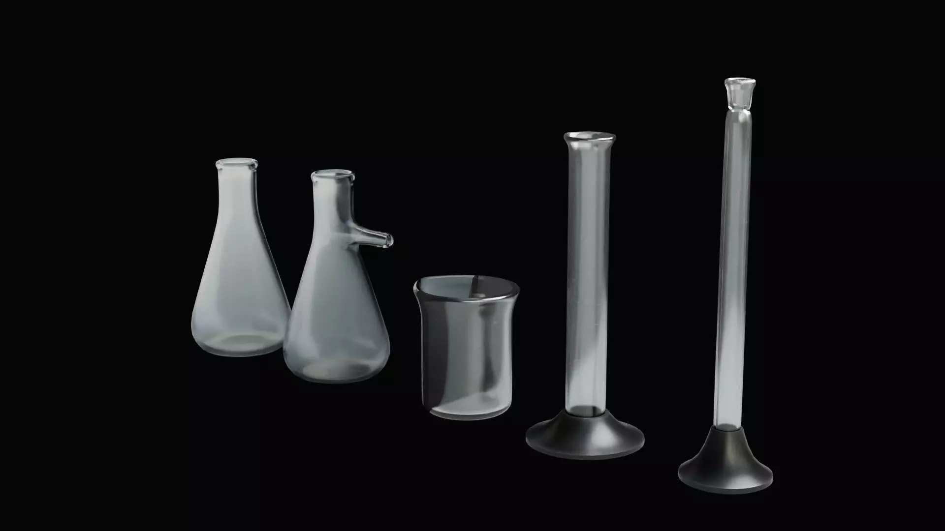 This set of laboratory glassware includes 7 total meshes with 5 pieces of glass. the models are high quality Subdivision ready models that are water tight. The meshes are viewable from all angles and distances. the meshes are also UV Unwrapped for retextruing if needed.