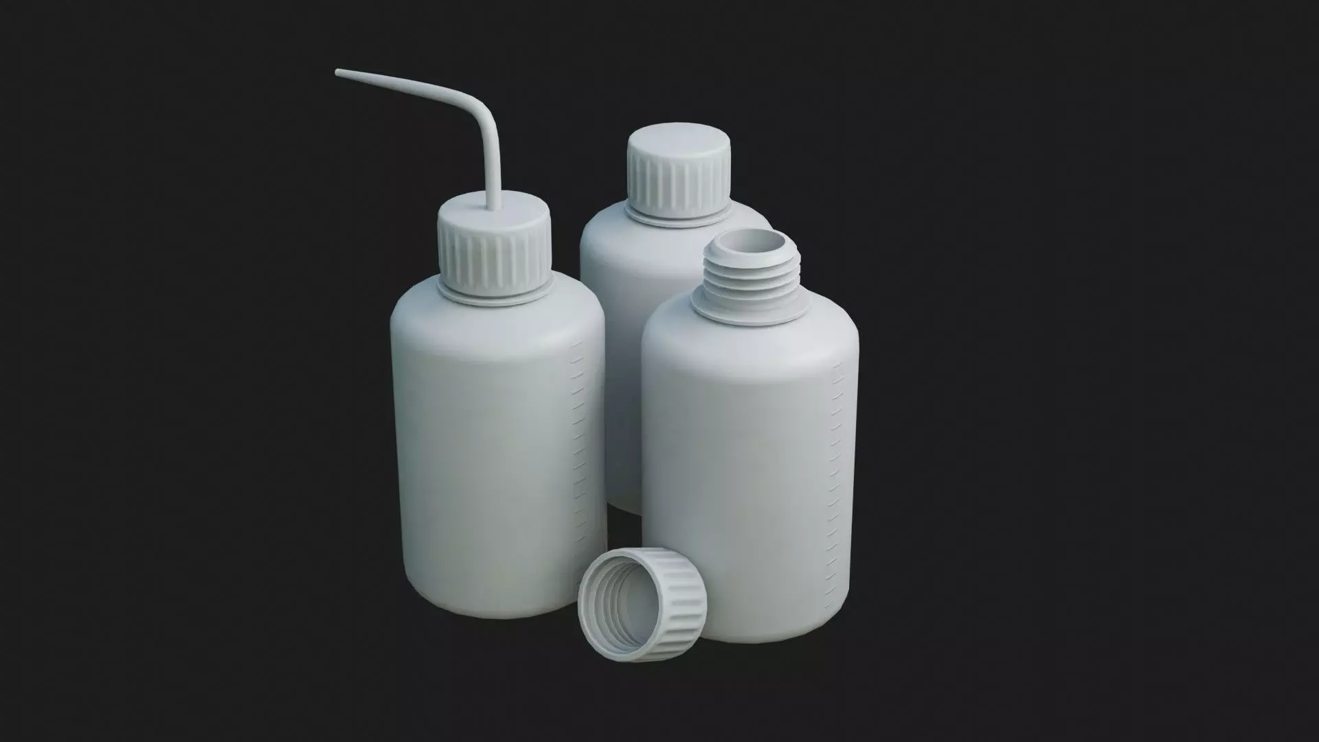 This Laboratory Wash bottle is great for any lab, medical, or science scene. This comes with 2 bottles. 1 that has a closed lid, and the other has a straw. The mesh is viewable from all angles and distances and is a water tight mesh. The Caps, Straw, and bottle also have their interiors modeled.
