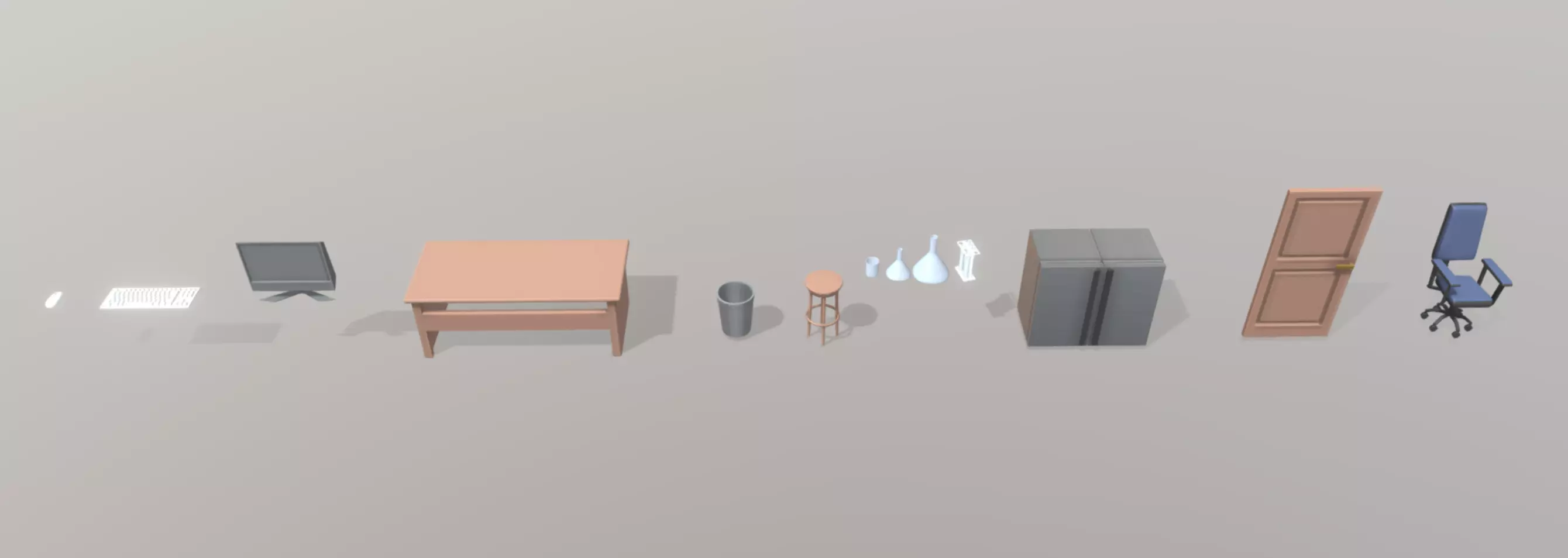 The model has material settings that define how surfaces look (color, shine, transparency, etc.).
