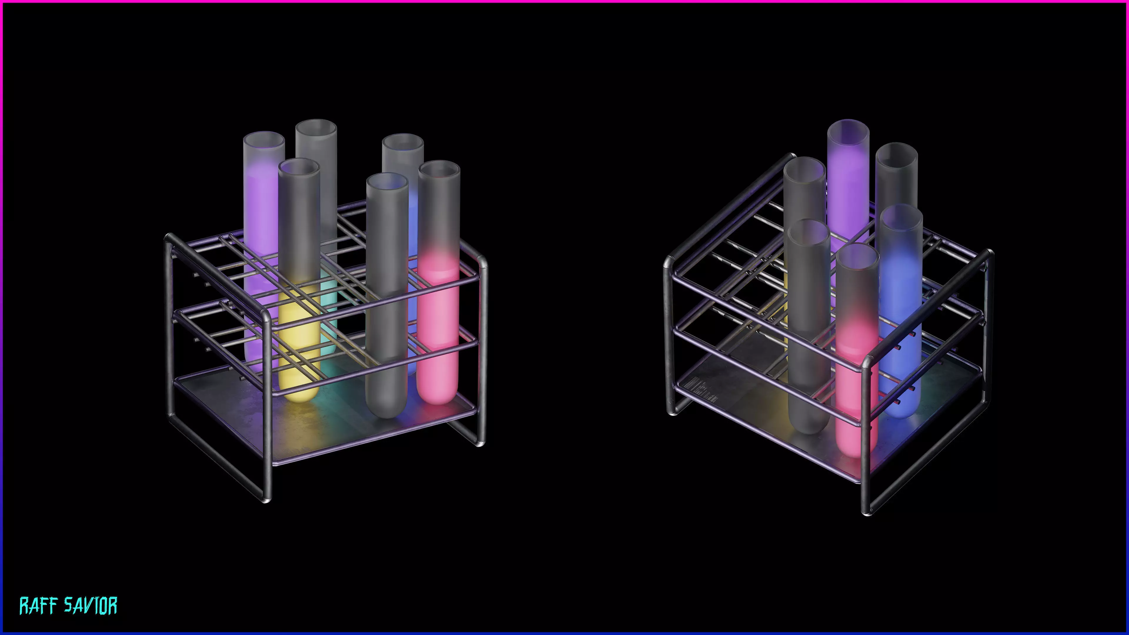 Neon Test Tubes Low-poly 3D model