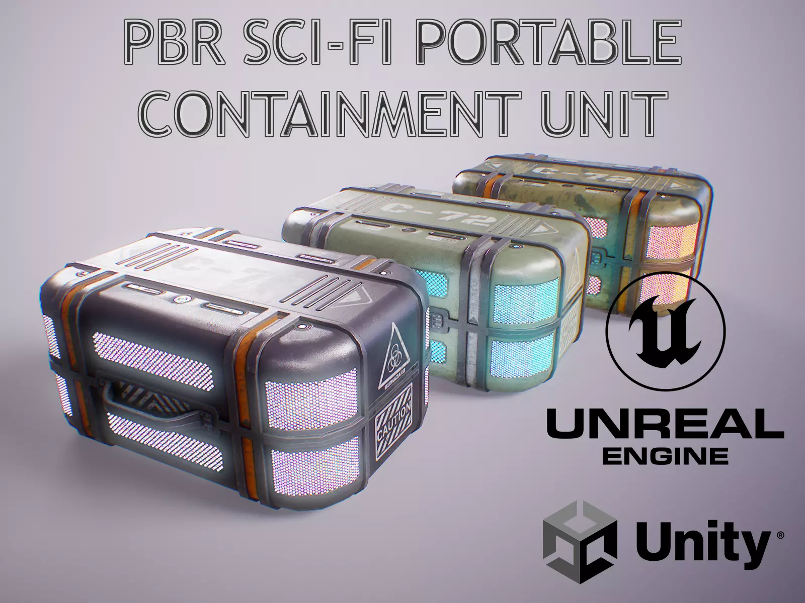 This PBR SciFi Portable Containment Unit was designed to fit in various scenes. Wether you are setting up a scifi first person shooter, a futuristic horror game or even a modern day survival themed game - the PBR SciFi Portable Containment Unit fits in many situations. It comes with 3 different texture sets (Military Camo Plastic Case/Black Plastic Case/Industrial Green Plastic Case) and detailed 4K textures set up in Metallic/Roughness so it can even be used as a Hero Asset!