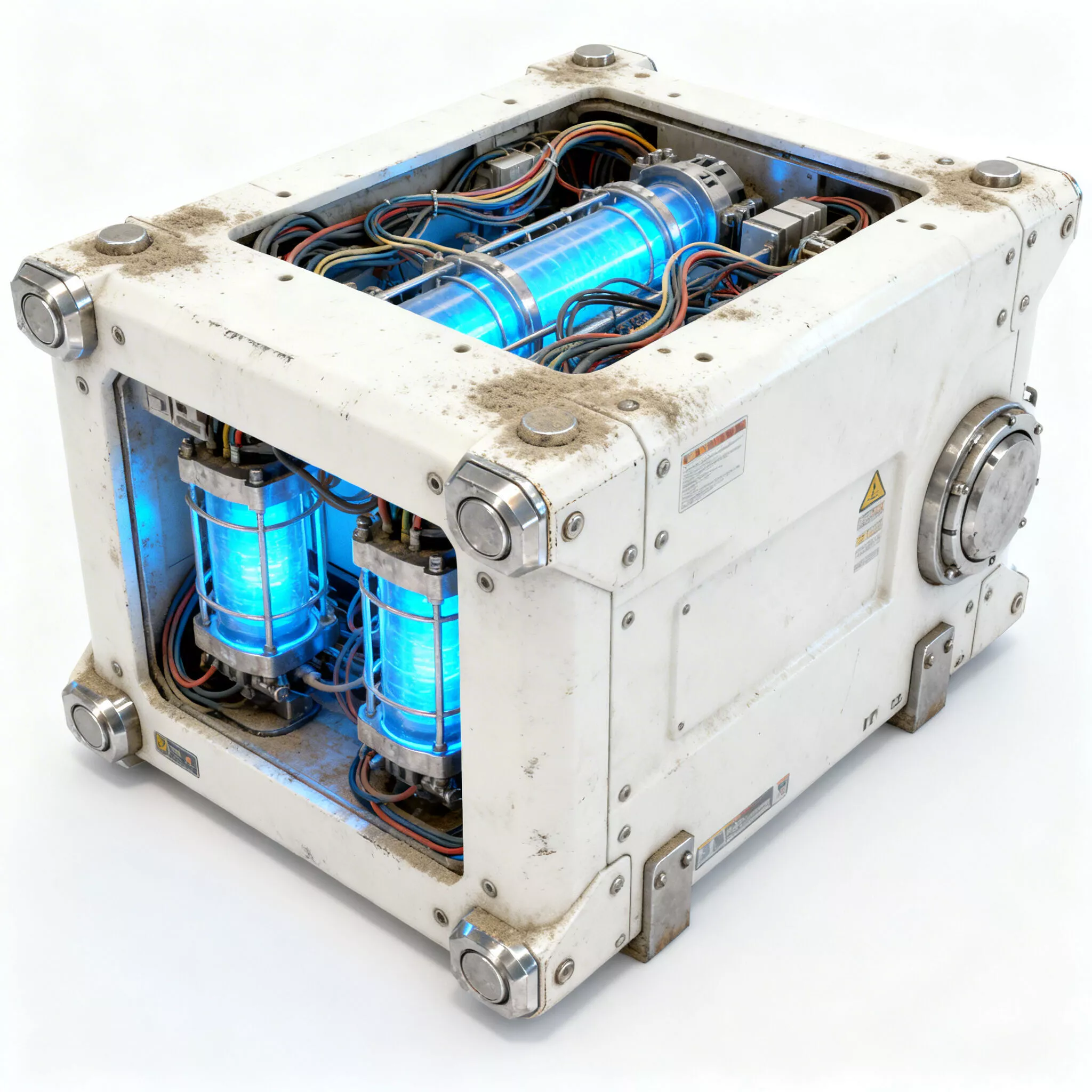 Tagsgenerator scifi power modular energy core futuristic industrial machinery cyberpunk glowing blue plasma mechanical prop asset electric equipment reactor battery