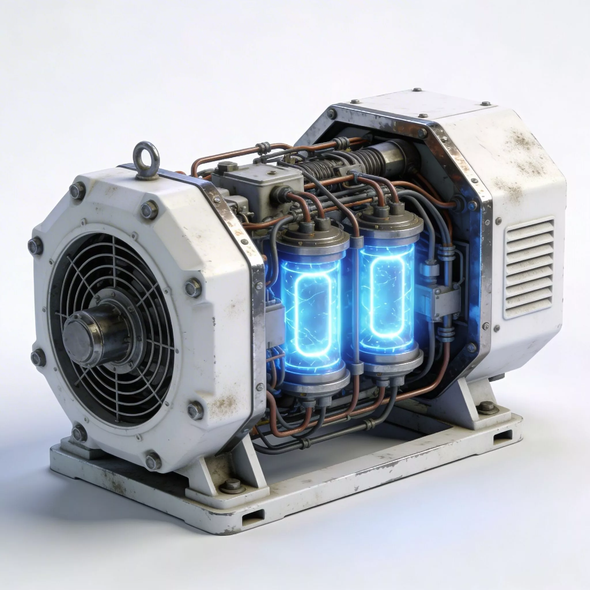 Tagsgenerator scifi power energy core realistic futuristic industrial machinery cyberpunk glowing blue plasma mechanical prop asset engine electric equipment reactor