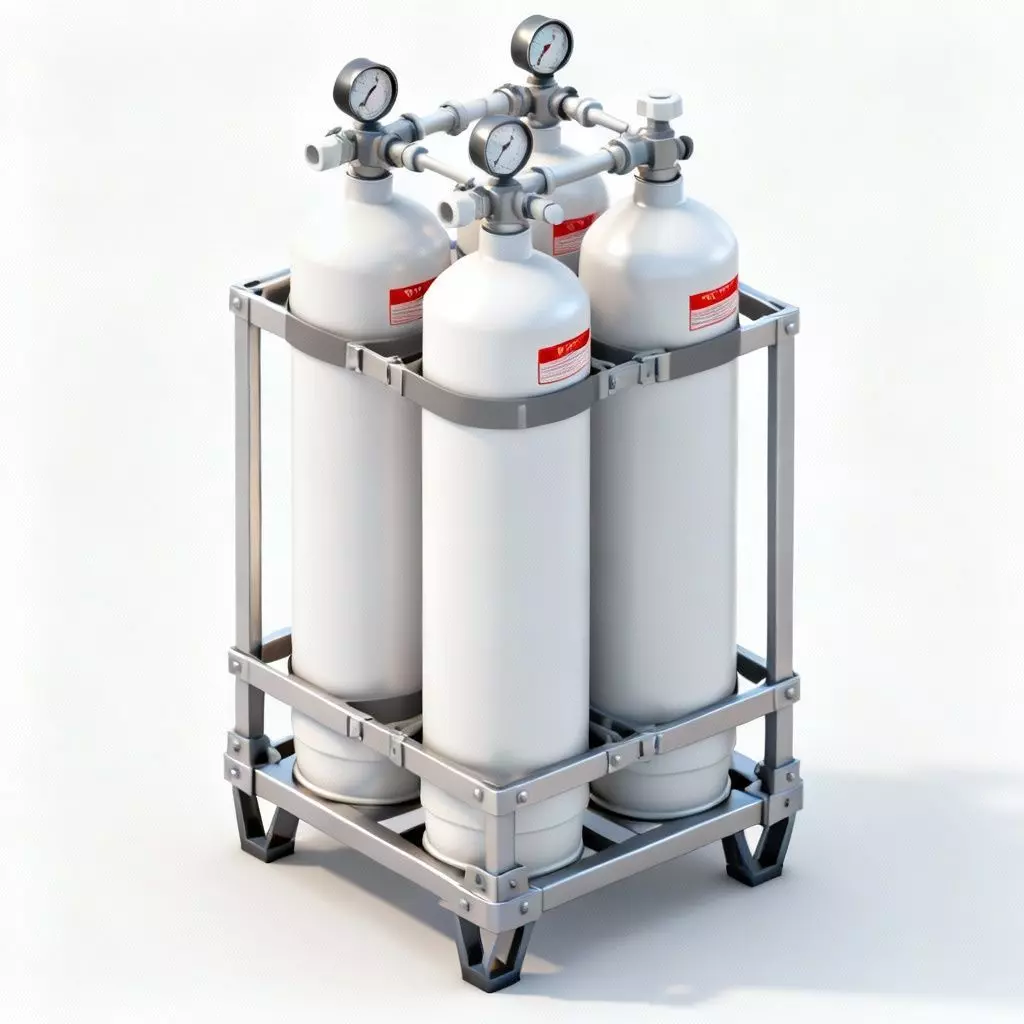 The Overall Concept This asset is a cluster of high-pressure gas tanks held in a strong metal frame. It is designed for industrial factories, science labs, or spaceship engine rooms where fuel or oxygen needs to be stored safely.
