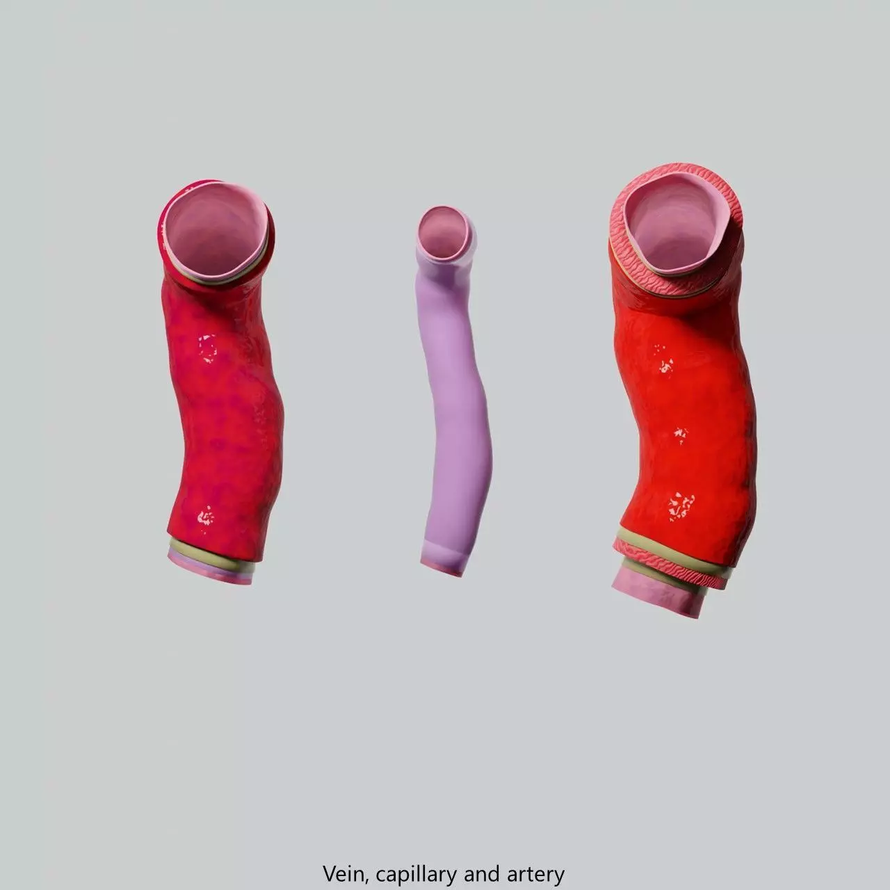 This is an adjustable 3D model of blood vessels (indluding one artery, a capillary and a vein) with .