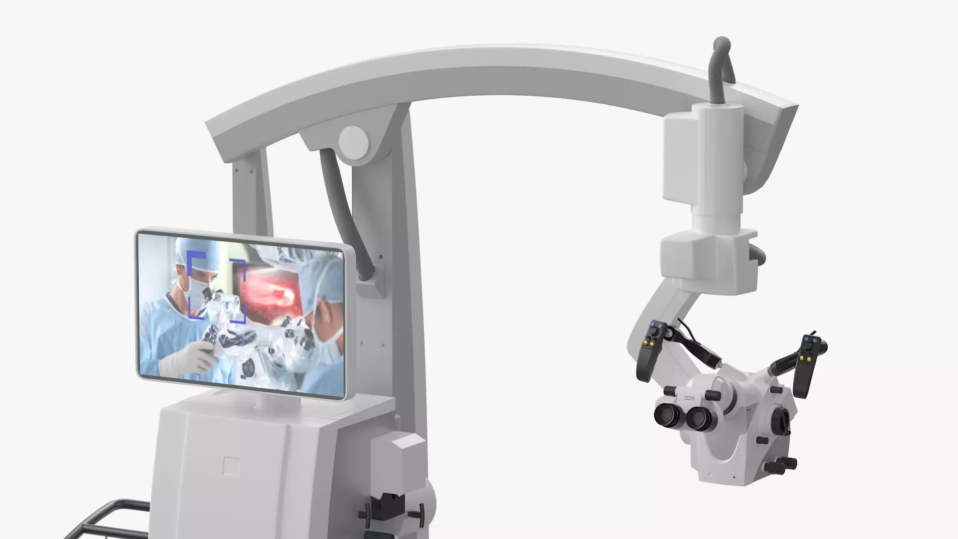 Advanced Surgical Microscope With Monitor Rigged for Maya is a 3d model of a state-of-the-art medical device used for magnified visualization during surgical procedures.