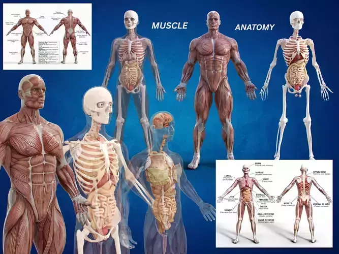 Muscle anatomy involves three main types—skeletal (voluntary movement), cardiac (heartbeat), and smooth (organ function)—each with unique cellular structures and functions, all relying on contractile proteins like actin and myosin for movement, organized within connective tissues (endomysium, perimysium, epimysium) that bundle fibers into fascicles and muscles, ultimately attaching to bones via tendons. Muscle TypesSkeletal Muscle: Striated (striped), voluntary (conscious control), multinucleated fibers attached to bones via tendons, responsible for body movement, posture.Cardiac Muscle: Striated, involuntary, found only in the heart, forms branching fibers connected by intercalated discs, pumps blood.Smooth Muscle: Non-striated, involuntary, spindle-shaped cells in walls of internal organs (intestines, blood vessels) to move substances