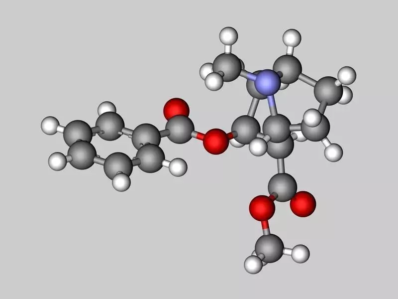 Cocaine (Formula: C17H21NO4, CAS: 50-36-2) is a naturally occurring compound found in the coca plant, mostly grown in South America. It is the second most frequently used illegal, recreational drug after cannabis. It is a strong stimulant which inhibits the reuptake of the neurotransmitters serotonin, norepinephrine, and dopamine, increasing their concentration in the brain.