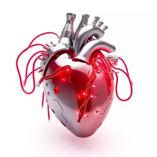 This is a highly detailed 3D model of a cutting-edge cybernetic heart, meticulously designed to blend organic form with advanced technological components. It features gleaming metallic arteries and valves, a vibrant glossy red main body, and intricate circuit board patterns with integrated glowing red lights and exposed wiring, giving it a powerful, futuristic aesthetic. This model is ideal for a wide range of creative projects, including immersive sci-fi game environments, engaging augmented reality (AR) and virtual reality (VR) experiences, captivating animated sequences, detailed medical visualizations with a technological twist, and impressive digital art compositions. Its versatility makes it perfect as a central prop in cyberpunk settings, a unique internal organ for robotic characters, or a symbolic element in speculative fiction narratives. The model boasts clean topology, is UV unwrapped, and is prepared to support PBR workflows for realistic rendering across various engines. It is optimized for both real-time applications, ensuring smooth performance in interactive projects, and high-quality static renders requiring superior visual fidelity. Supported file formats include GLB, OBJ, STL, ABC, DAE, FBX, USD, and PLY, providing maximum compatibility and ease of integration into your preferred software pipeline.
