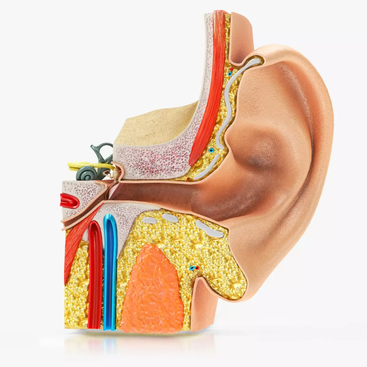 Ear Anatomy is a high quality, photo real models that will enhance detail and realism to any of your rendering projects. The model has a fully textured, detailed design to 4K that allows for close-up renders, and was originally modeled in 3ds Max 2014 and rendered with V-Ray