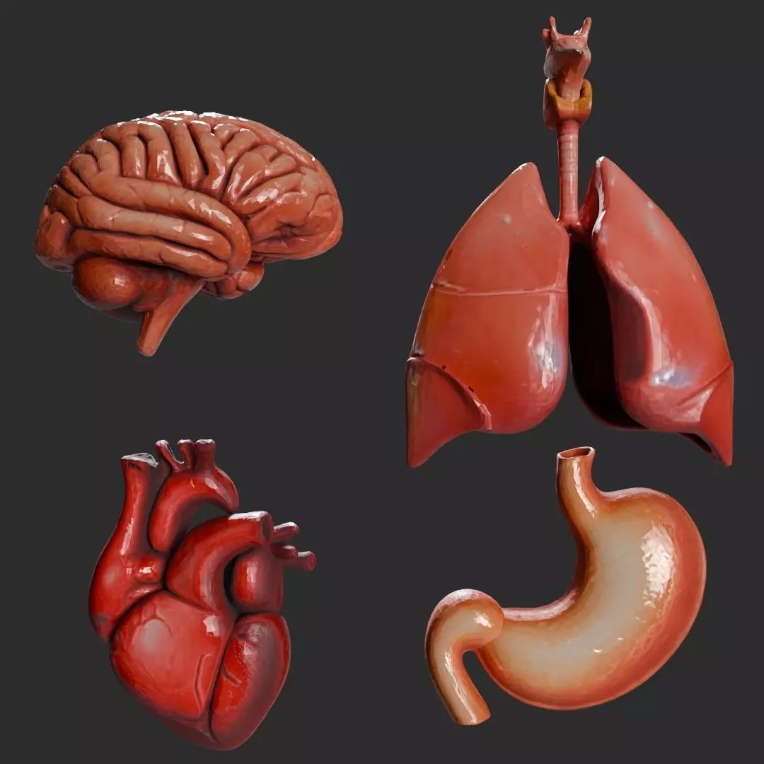 High-quality 3D model set features four anatomically human internal organs: the brain, heart, lungs (with trachea and larynx), and stomach. Each organ is meticulously crafted with near realistic textures, detailed geometry, and medical-grade anatomical precision, making it ideal for educational, medical, and cinematic applications. The models are optimized for use in Blender, Unreal Engine, Unity, Cinema 4D, and other major platforms. Perfect for anatomy visualization, AR/VR simulations, surgical training, and medical animation.Render made with BLENDER.Files include : BLEND, OBJ, STL, GLB, FBX
