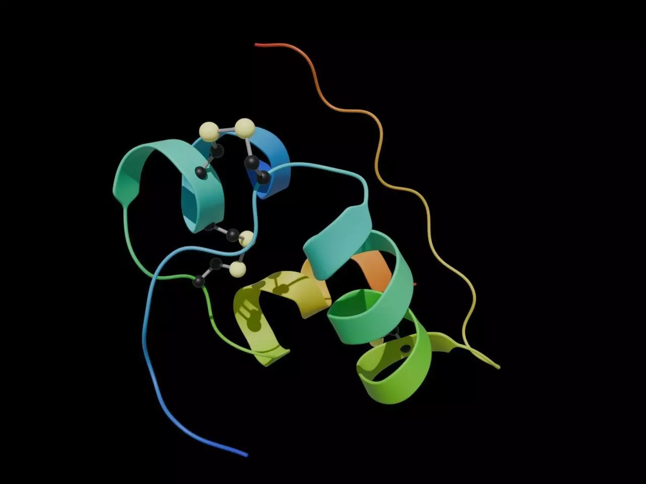 3D ribbon diagram model of Insulin(2HIU) .