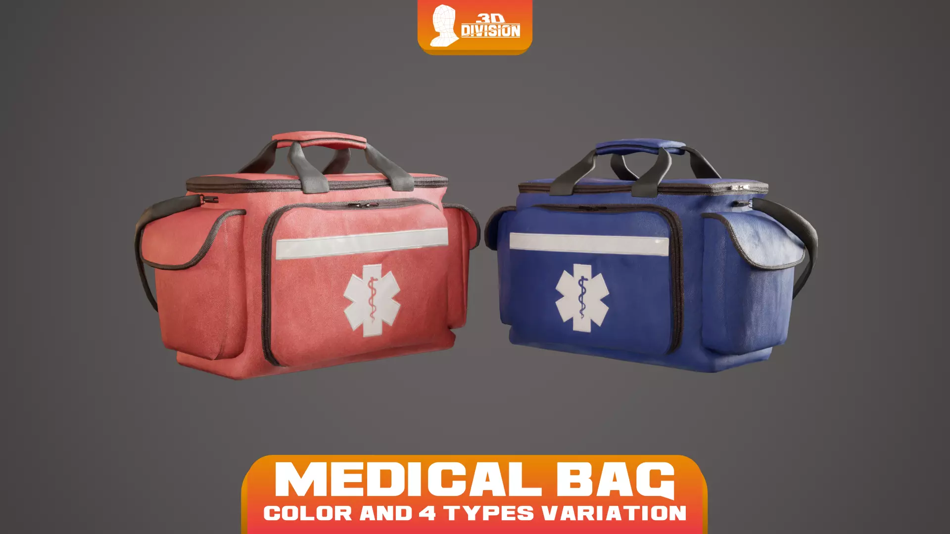 Low-poly, Game-Ready Medical Bag. Two mesh variations (with and without shoulder strap) and real-time color customization via shader masks.