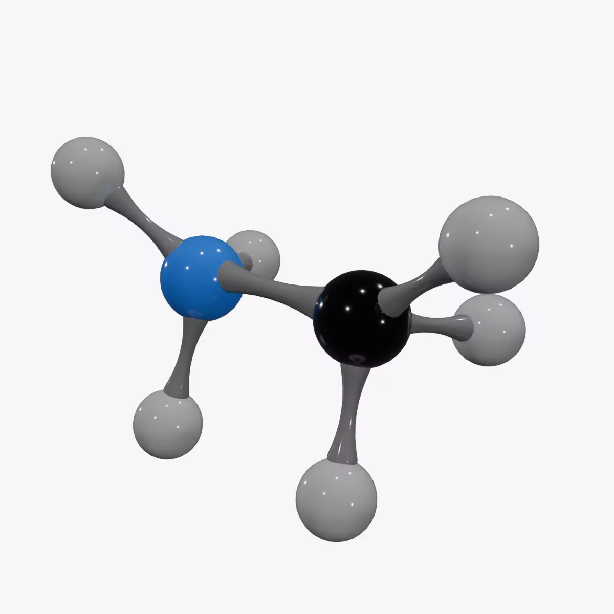 This Methylammonium Ion 3D model represents CH3NH3?, a positively charged ion formed when methylamine (CH3NH2) gains a proton (H?). The ion consists of a carbon attached to three hydrogens and an ammonium group (–NH3?), making it an important intermediate in acid–base chemistry. It plays a role in organic reactions, ionic liquids, and materials science, especially in modern research on perovskite solar cells.
