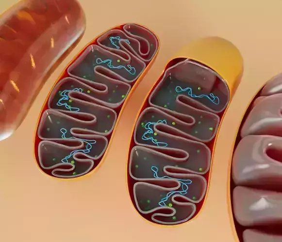 High-quality 3D model of a mitochondrion, originally created in Cinema 4D and rendered with Redshift.This model accurately represents the characteristic structure of a mitochondria, including the outer membrane, inner membrane, and the folded cristae, providing a realistic and detailed biological asset.