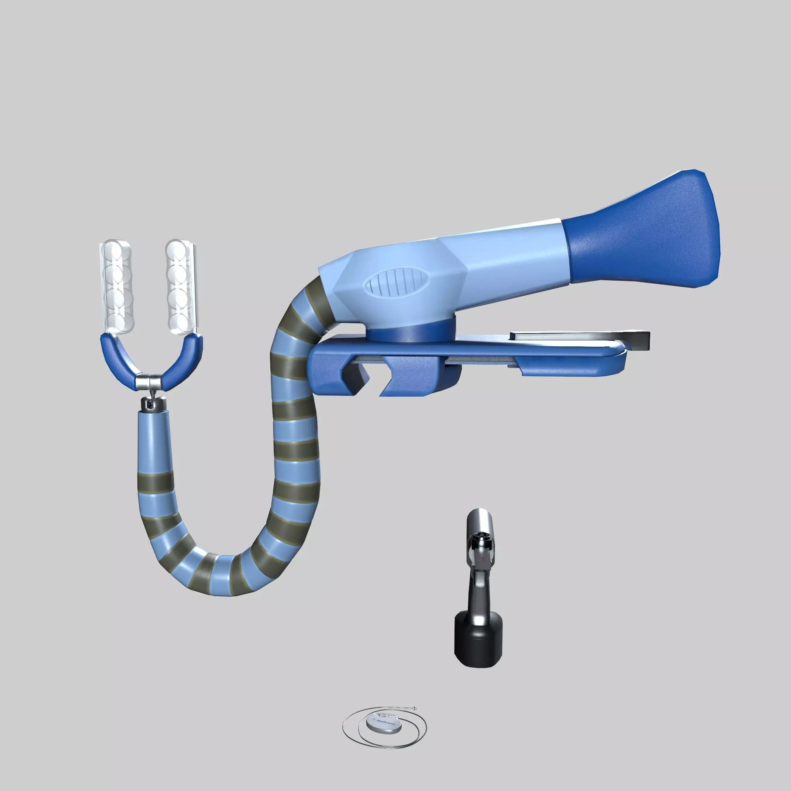 The model showcases realistic material behavior — combining stainless steel, surgical-grade polymers, and electrical component surfaces for a lifelike presentation.
