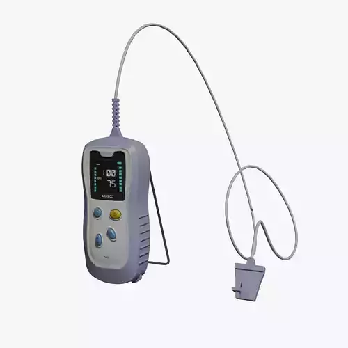 A clean and realistic 3D model of an oximeter (pulse oximeter) commonly used in hospitals and home healthcare to measure blood oxygen saturation and pulse rate. Designed with accurate proportions and a simple medical look, this model is ideal for medical scenes, healthcare visualizations, hospital interiors, training simulations, and product renders.