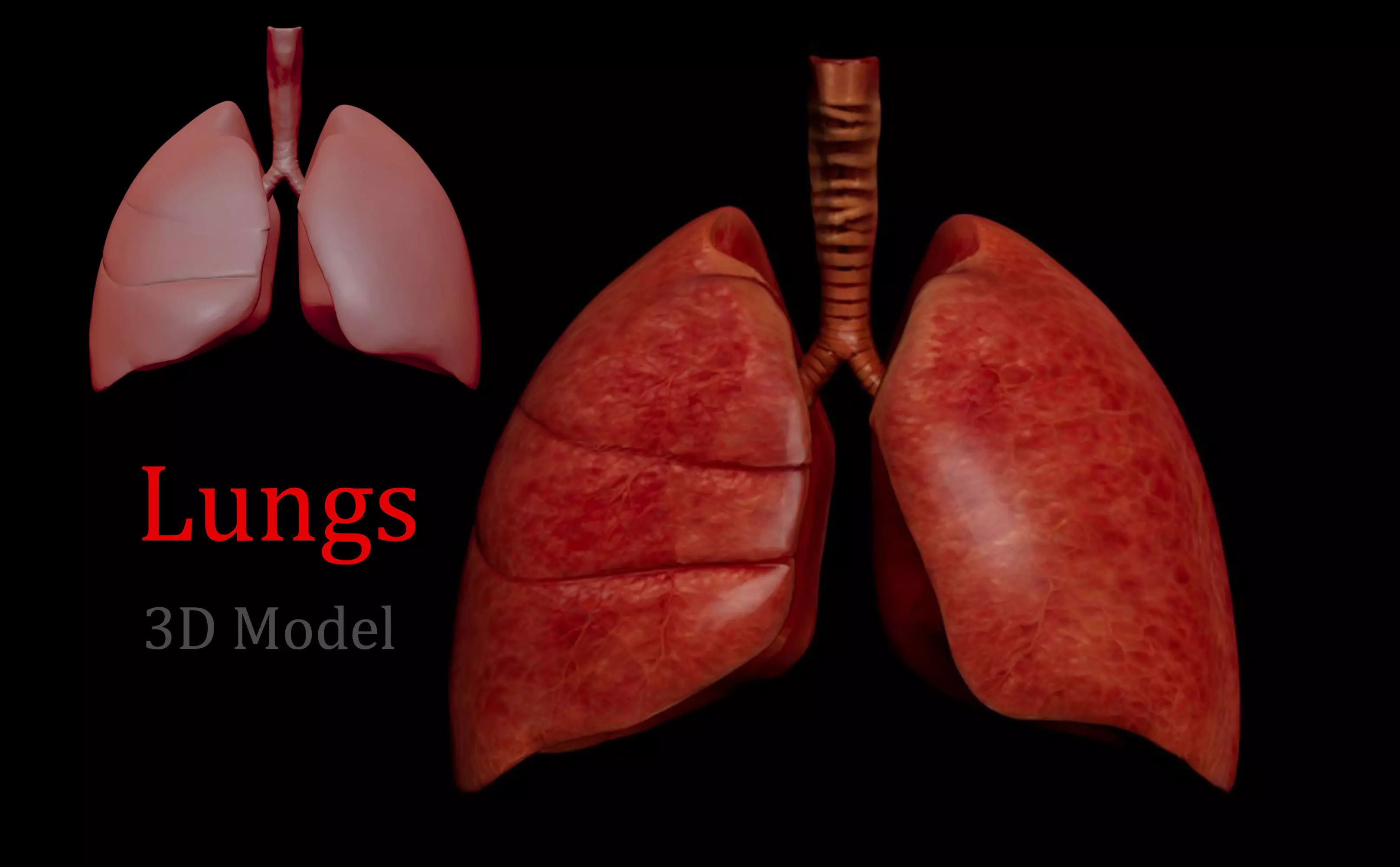 This high-quality 3D model of the human lungs has been meticulously crafted to provide both visual realism and anatomical accuracy. It is ideal for medical visualization, educational presentations, AR/VR applications, and real-time or cinematic rendering.