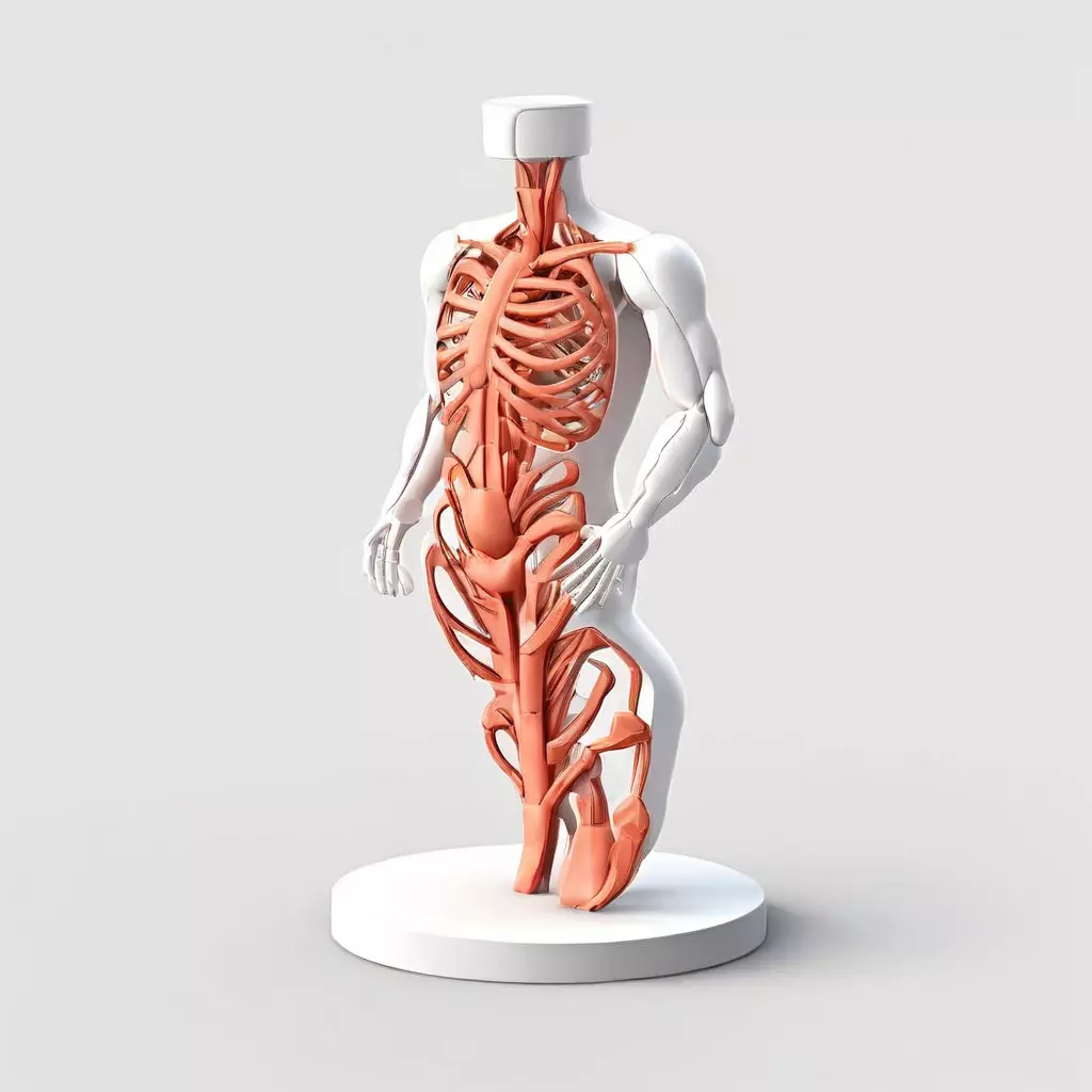 This highly detailed 3D model showcases the human musculoskeletal system, featuring the skeleton and leg muscles. Ideal for medical visualizations, educational purposes, and anatomical studies. It can be used in various applications such as game development, AR/VR experiences, and 3D printing. The model is available in multiple formats including GLB, OBJ, STL, FBX, and is optimized for both real-time and static rendering. The topology is clean, UV unwrapped, and comes with PBR textures for realistic rendering. The model includes a display stand. Key features include accurate anatomical representation, detailed muscle and bone structures, and high-resolution textures. This model offers a comprehensive and visually appealing representation of the human musculoskeletal system, suitable for professionals and students alike. The model is rigged and ready for animation.
