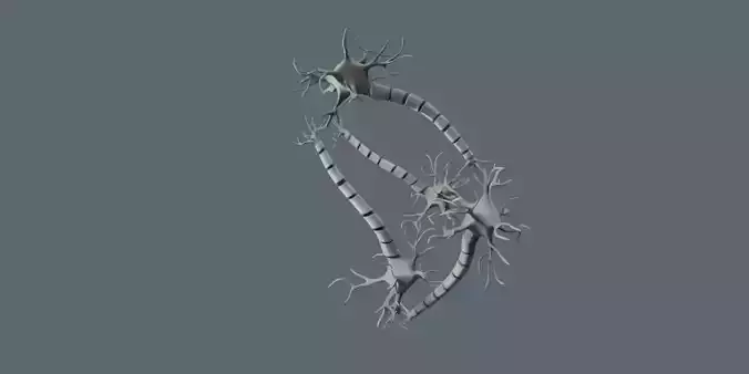 highly detailed and realistic 3D model of interconnected neurons showing dendrites, axons, and myelin segments. Perfect for medical visualization, scientific animations, biology education, and research presentations.