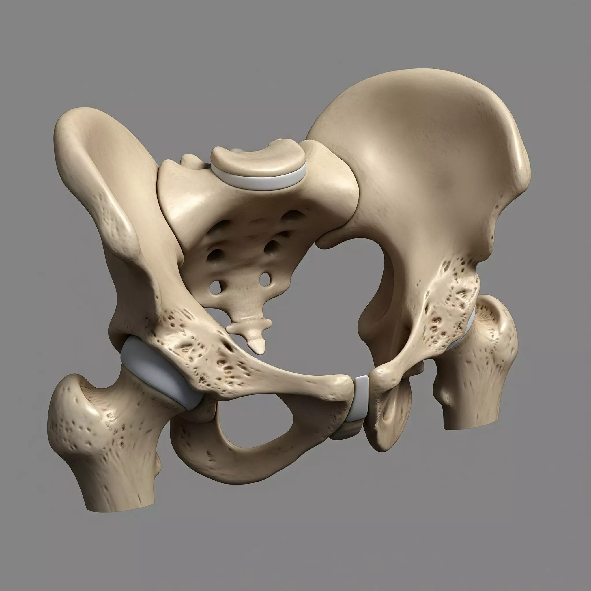 This scientifically accurate 3D model presents a detailed, educational exploration of the male pelvic anatomy, emphasizing its evolutionary specialization for strength, support, and locomotive performance. Anatomically precise and biomechanically informed, the model reveals the complete male pelvis in high fidelity, including all skeletal landmarks, contours, and structural adaptations.