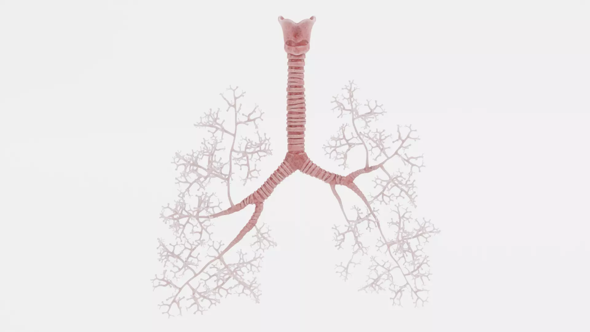 A highly detailed anatomical representation of the human trachea and bronchial tree, precisely modeled to capture the branching airway structure with scientific accuracy. The model features smooth organic geometry, realistic curvature, and clear segmentation between the trachea and bronchi, providing a visually accurate depiction of the upper respiratory pathway.