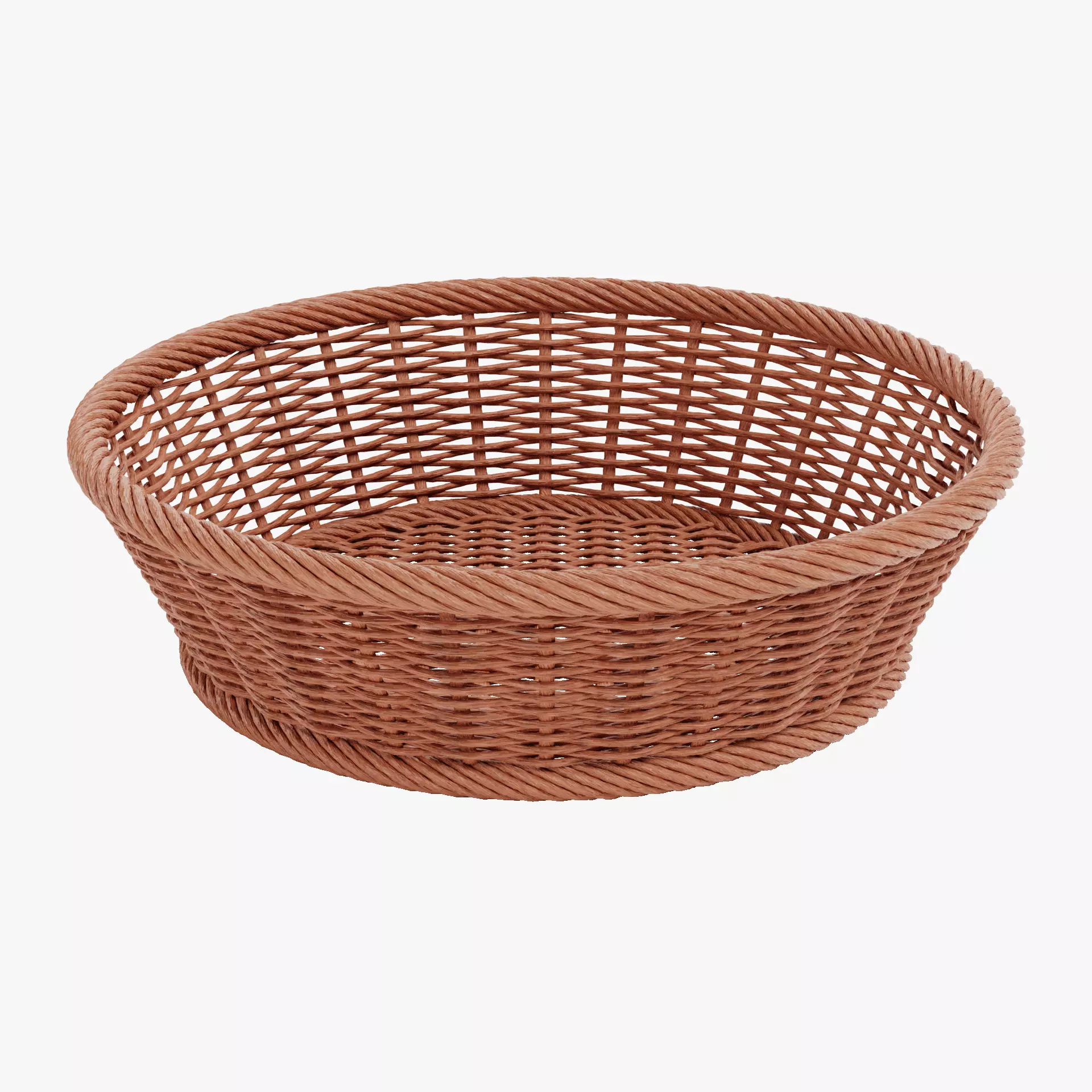 Realistic wicker basket with a detailed woven structure and interlaced pattern, that captures the natural irregularity of an organic rattan material. Its compact, bowl-like form makes it easy to place into a scene as a functional and decorative element. Suitable for interior visualization, product scenes, and natural or rustic compositions.