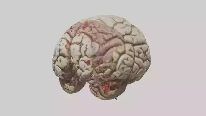 Zombi beyin modeli, çürümüş beyin, ölü beyin, korku modeli, bozulmuş beyin, zombi efekti, beyin animasyonu, korkutucu beyin, korku malzemesi, canavar beyni, makaber, ürkütücü beyin, zombi animasyonu, çürüyen doku, beyin modeli.
