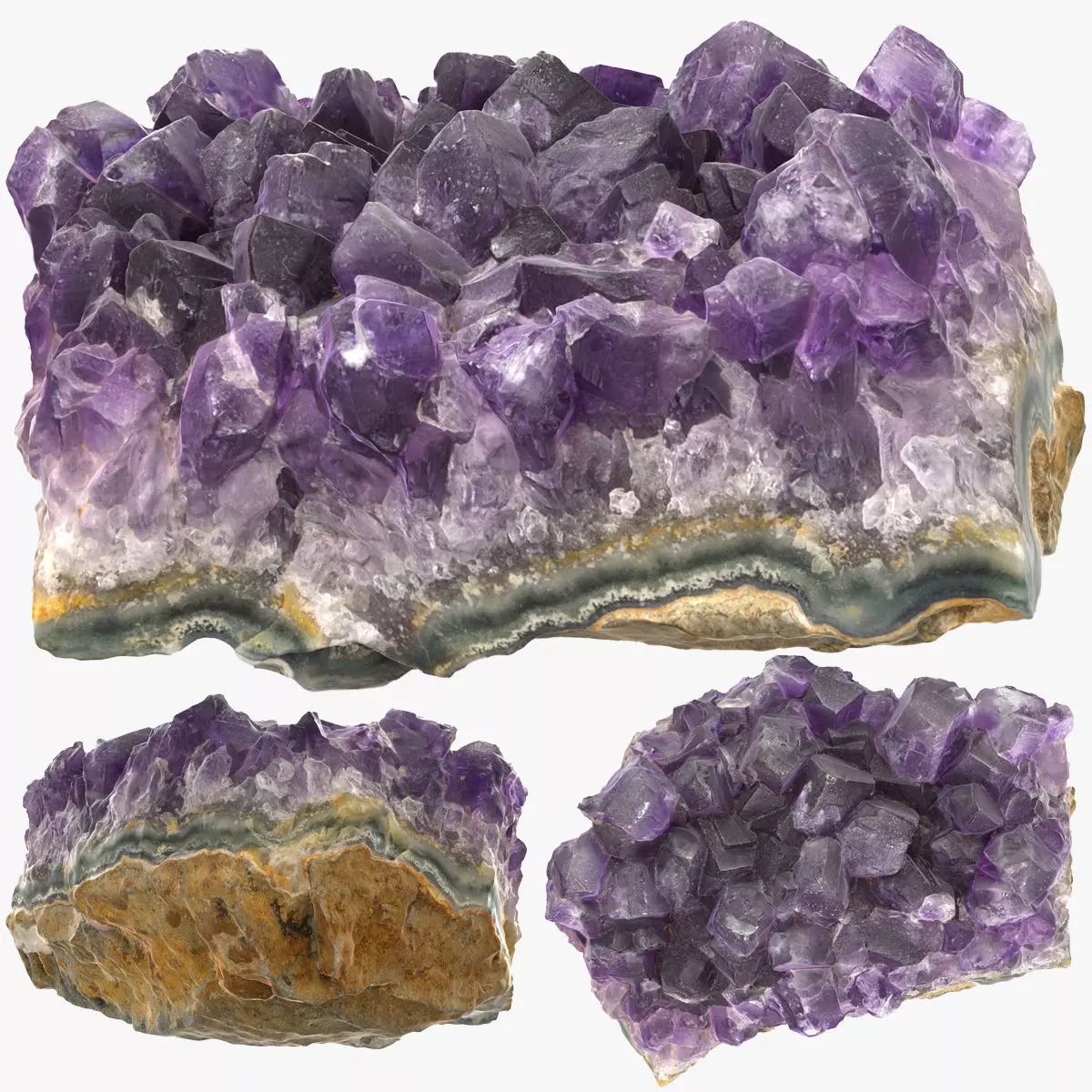 Amethyst Gemstone. Photo scanned model. It is retopologized and fully ready for use in Game Engines. The model has material in PBR pipeline textures. This pack contains low poly version of model with textures, and high poly source mesh with UV and textures. Pack contains blender scene with setuped meshes and materials.