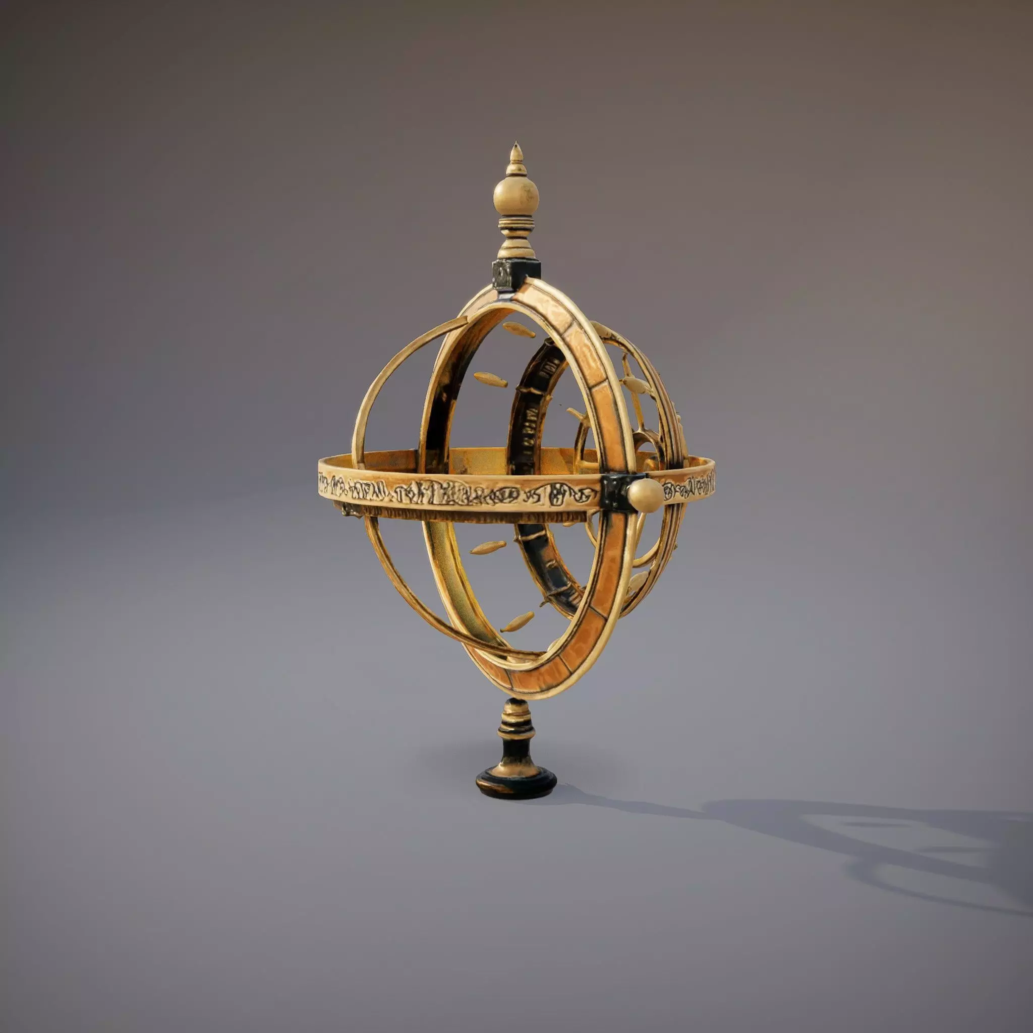 This Antique Brass Armillary Sphere model captures intricate celestial details with a classic aesthetic. Ideal for educational presentations, historical scenes, and digital museums, its detailed design enhances realism. Each model has 3 levels of detail: low-poly (1000 triangles for mobile), middle-poly (10,000 triangles for environment), and high-poly (100,000 triangles), which allows for the use of this model in production rendering (such as 3ds Max, Maya, Cinema4D, Blender, Vray/Corona/Cycles and all others), game engines (Unity and Unreal compatible), and interactive presentations, providing a choice of detail levels based on the LOD System principle. The model's textures are PBR, Diffuse, NormalMap, and reflection/roughness/metallic, which are suitable for any modern rendering engine. All models are accurately unwrapped and have no overlapping UV. Textures are 4096*4096 in size. Please like and leave a comment if you enjoyed the model.