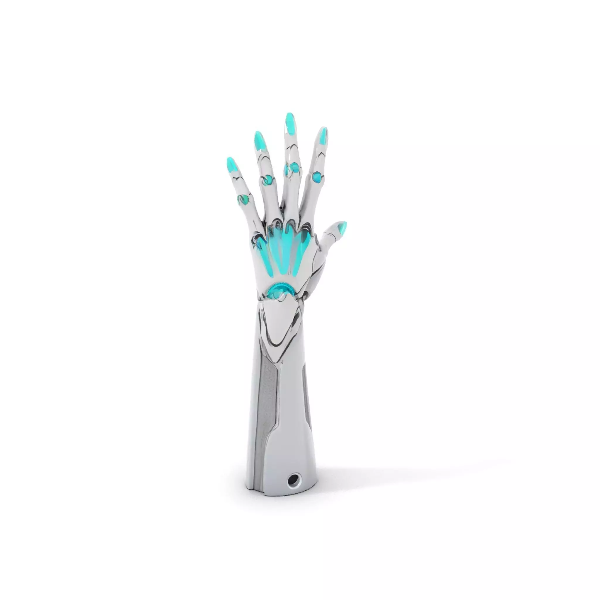 This model is perfect for use in sci-fi films, futuristic game environments, and innovation showcases, highlighting advanced prosthetic designs. The sleek design features advanced joints and a metallic finish, with glowing accents to enhance visual appeal.