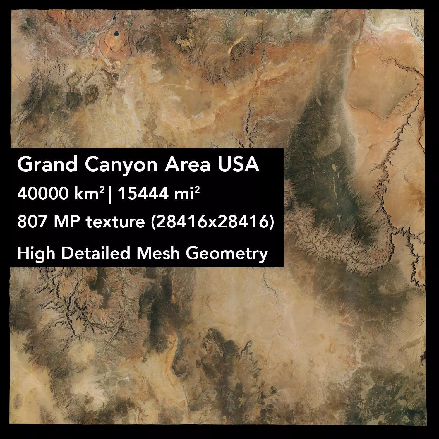 - this model covers an appr. 200km x 200km | 124mi x 124mi || 40000 square kilometres / 15444 square miles area of the Grand Canyon Area