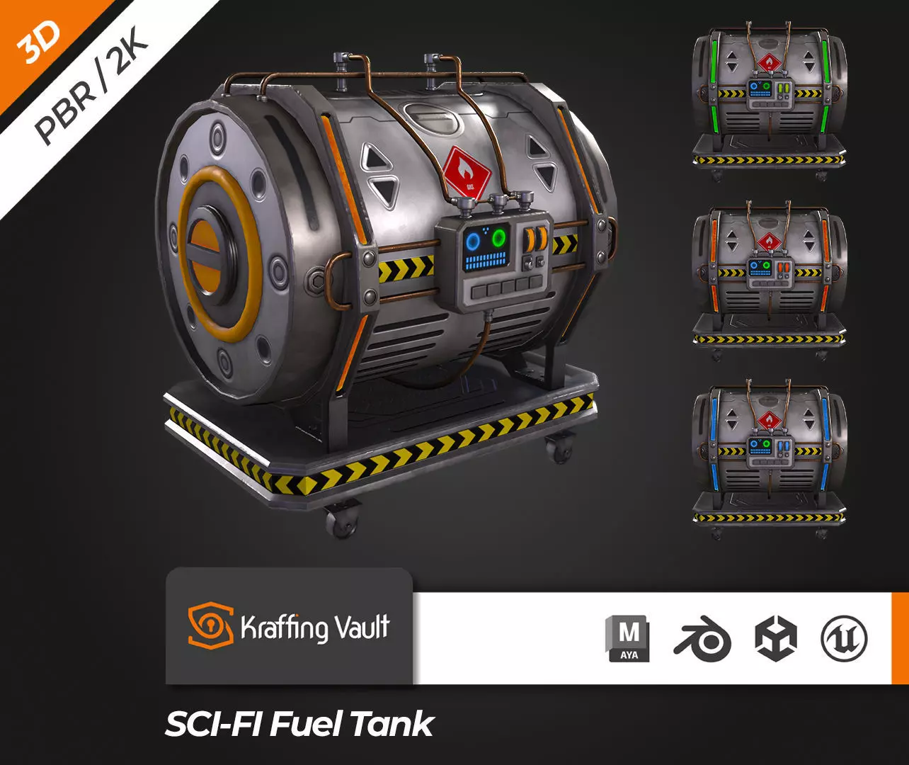 Kraffing presents a 3D modeling SCI-FI Fuel Tank V1. Recreated design so you can use it in personal projects, scenes, videogames and more.