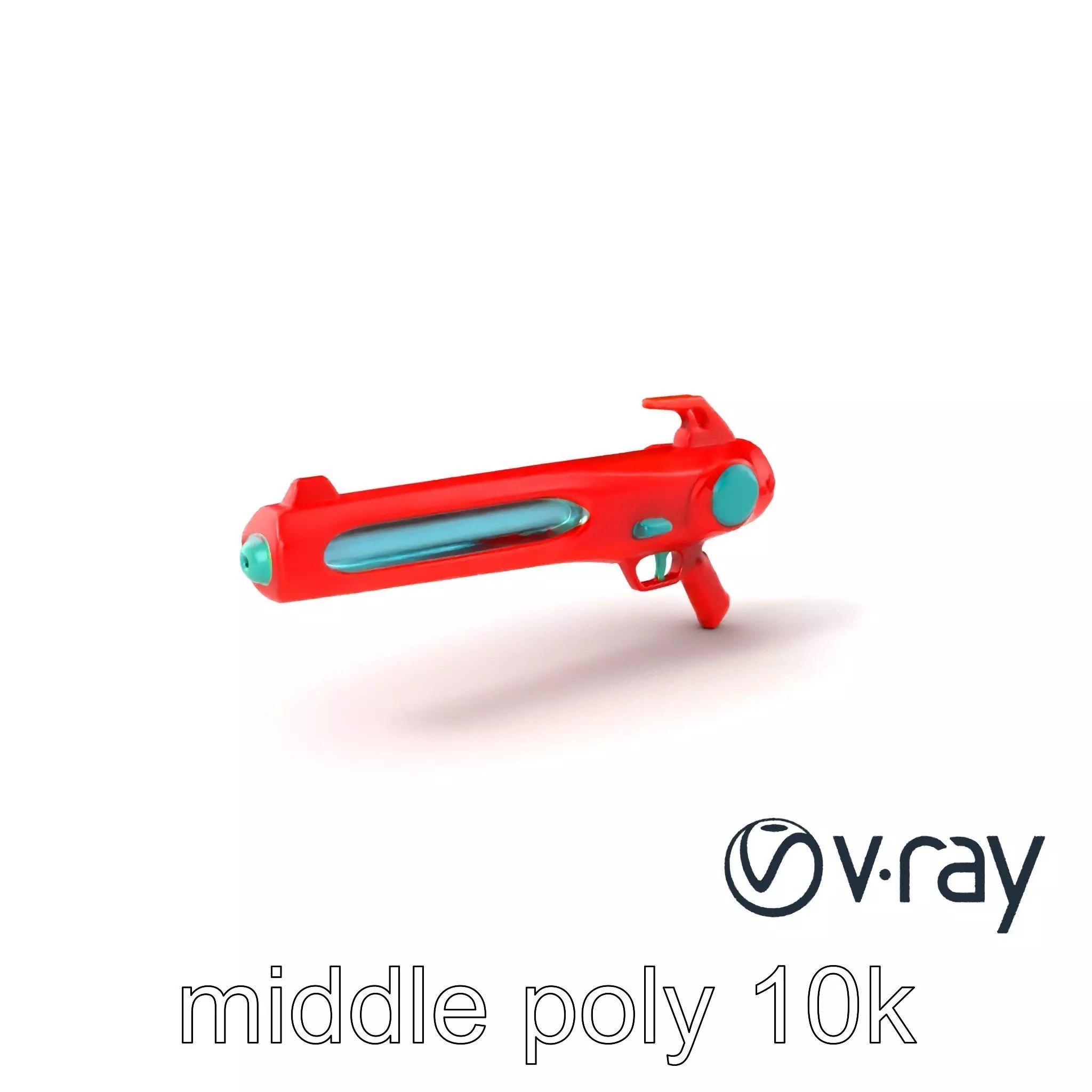 This vibrant plasma speargun with a color scheme reminiscent of ripe watermelon and bright turquoise inserts, featuring an aerodynamic 'toy-like' design, is perfect for sci-fi themed games, animations, and visual effects. The sleek and playful design adds a unique aesthetic to any virtual arsenal or futuristic environment.