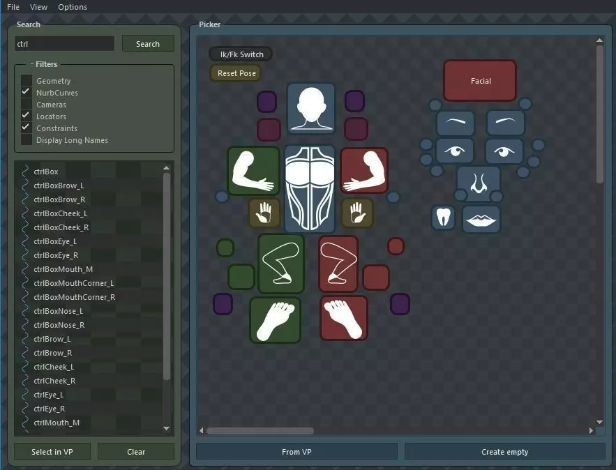 SearchNPick v1.3.0Animation Picker for Autodesk Maya 2018.