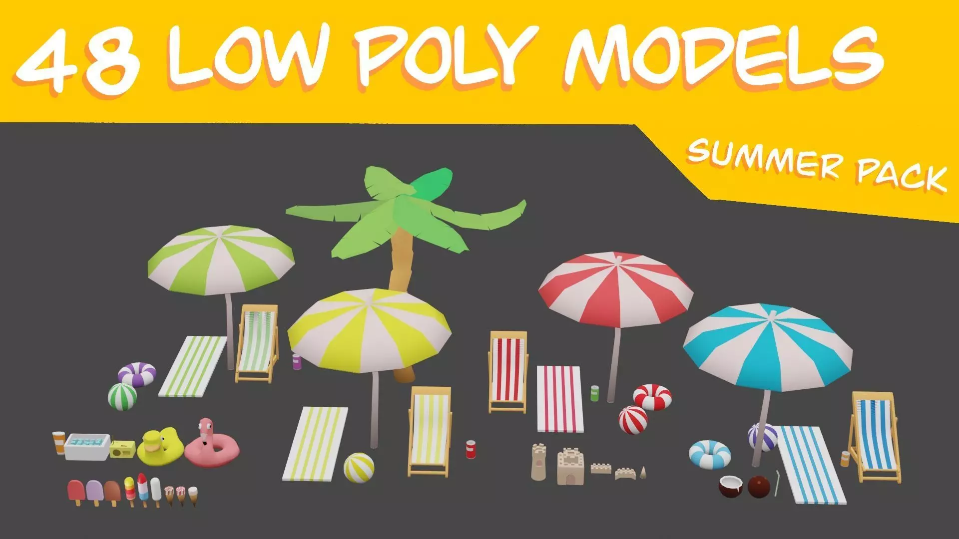 Hey ! This is my summer pack for games , ı used one texture for all meshes . Contact me if you encounter any problems