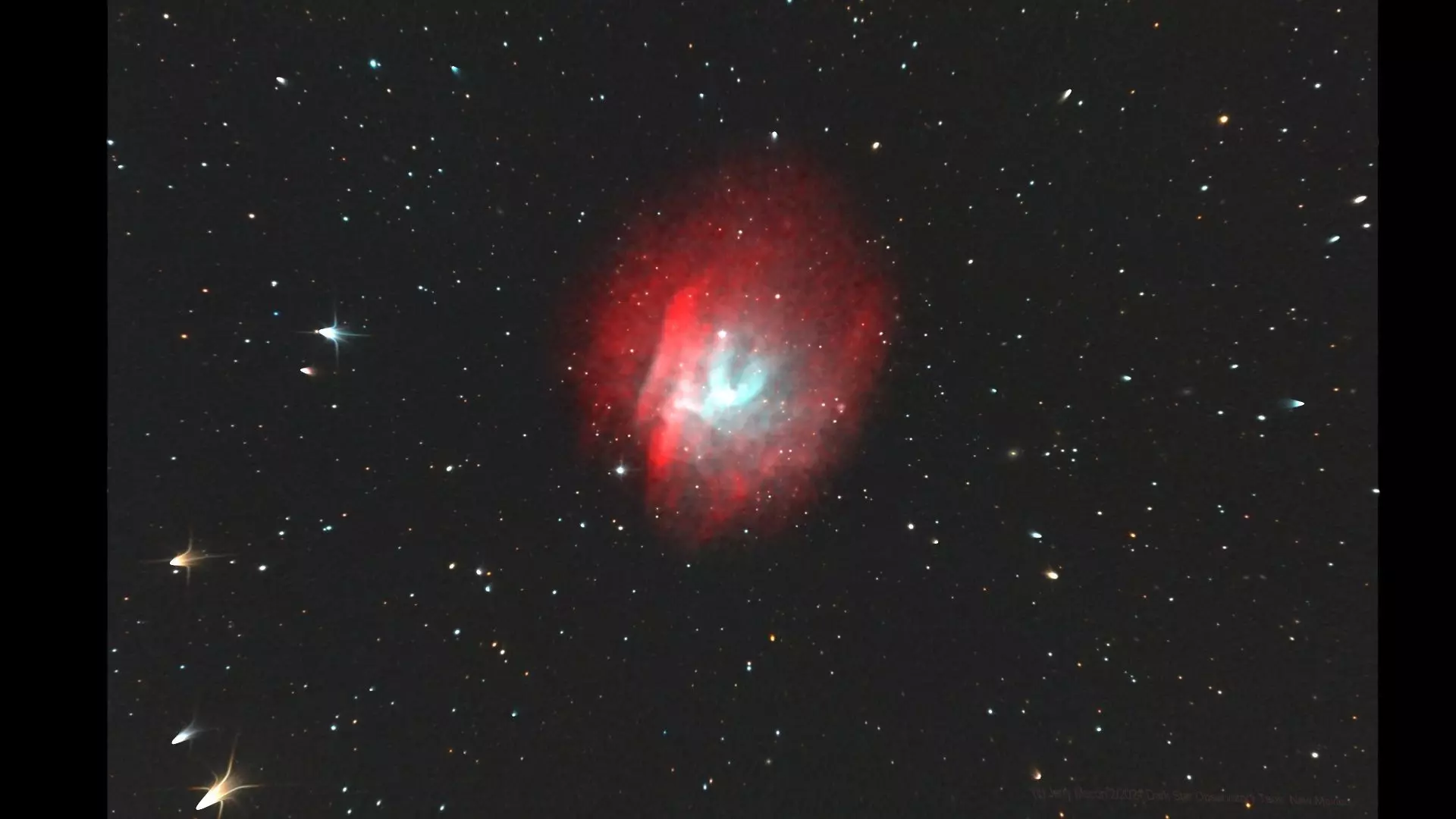 DescriptionAbell 35, also known as Sh 2-313, is a nebula located in the constellation of Hydra, at a distance of 400 light years. The nebula is characterised by its unusual appearance, which features a central bow shock surrounded by symmetric emission. In the centre of the nebula lies a binary star, composed of a G-type star and a white dwarf. Although it is commonly referred to as a planetary nebula, it has been suggested that the nebula wasn't created by a post-AGB star shedding its outer shells but it is interstellar medium photoionised by the passing binary system, leading also to the creation of the bow shock.