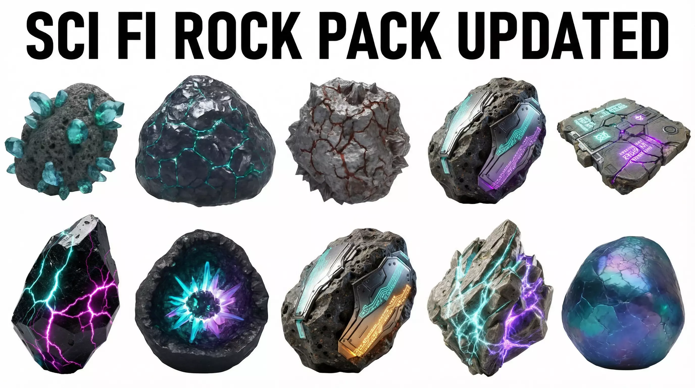 Explore a new world with this Alien Rock Pack Vol. 7, a set of 8 hyper-realistic extraterrestrial rocks designed for sci-fi and fantasy environments.Each model features metallic surfaces, glowing mineral veins, iridescent reflections, and alien crystal formations, making them perfect for planetary landscapes, alien worlds, or futuristic base terrains.