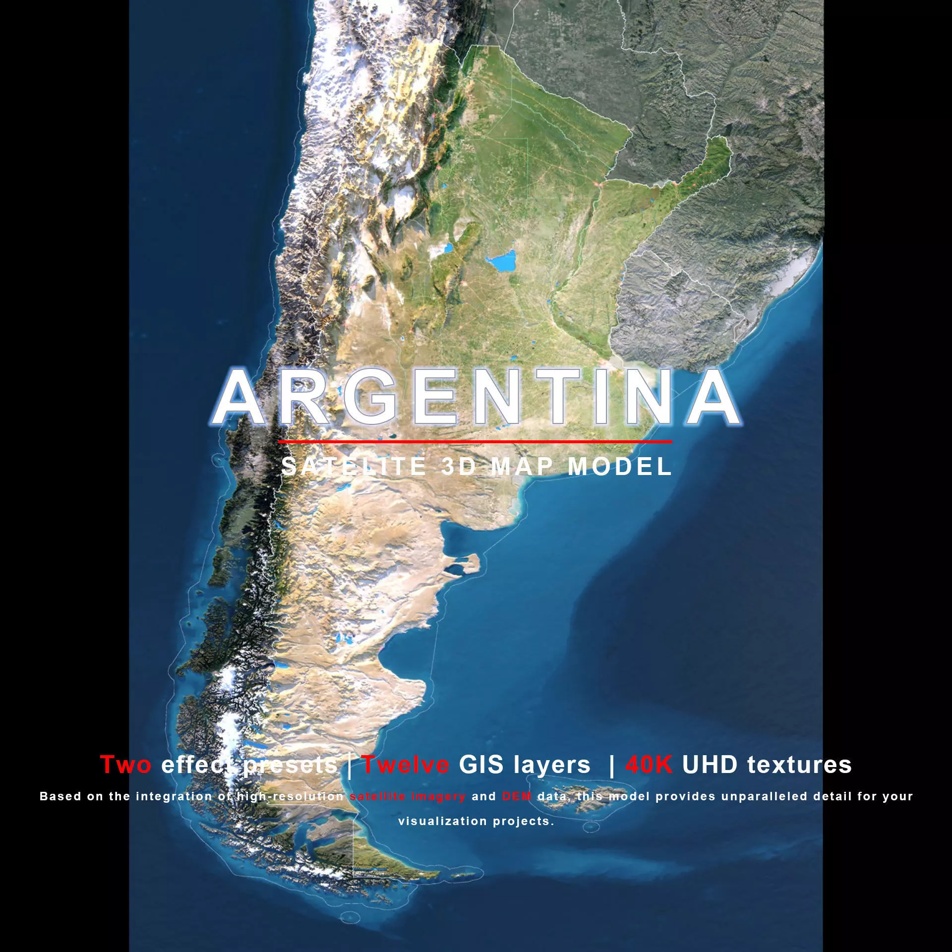 The model includes satellite imagery and masks. The masks are primarily used in material blending to adjust the material representation based on different geographical data. We provide texture maps in both 8K and 40K resolutions.