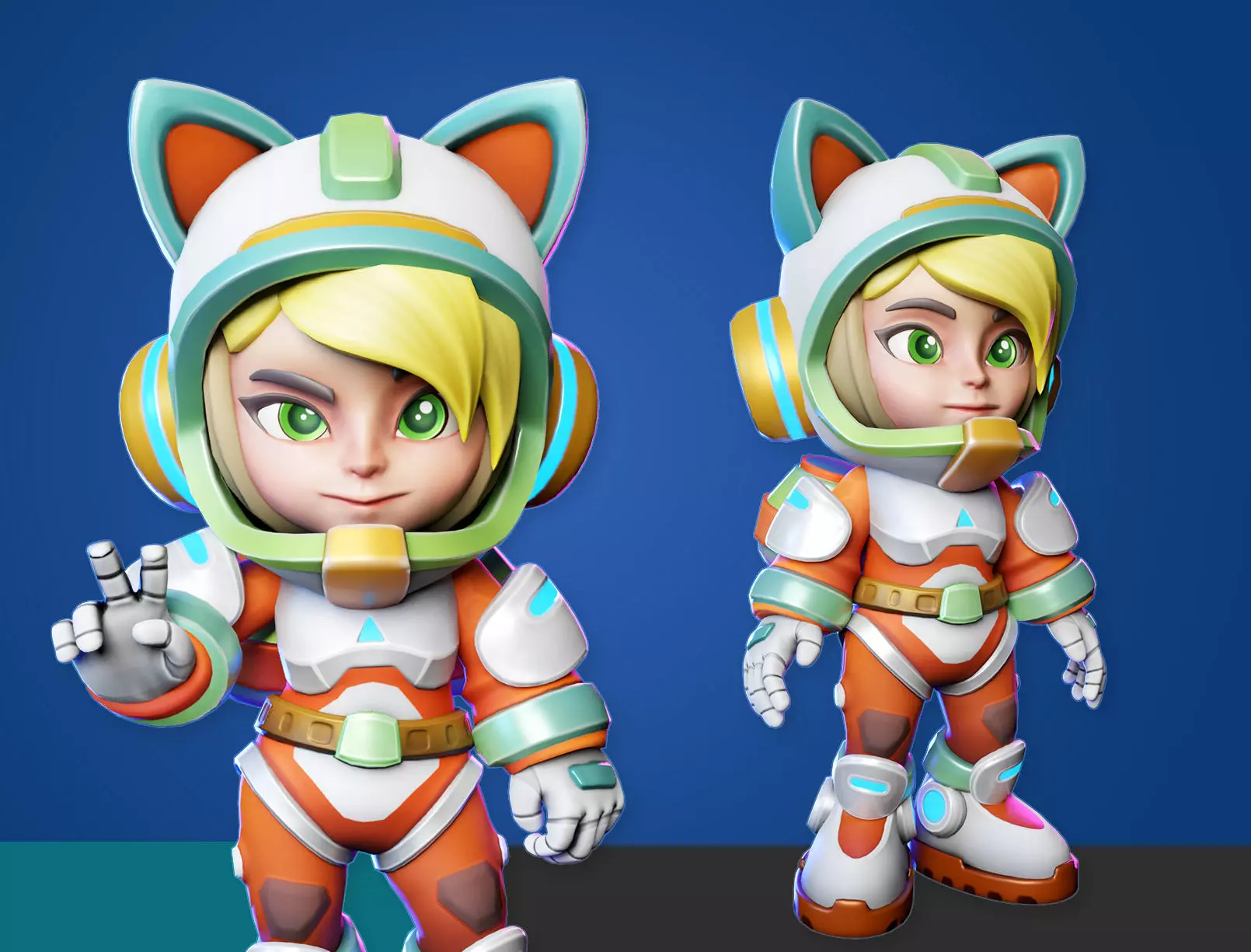 Modular animated Astronaut Girl character with simple facial rig: for animation, cartoons, games, etc.