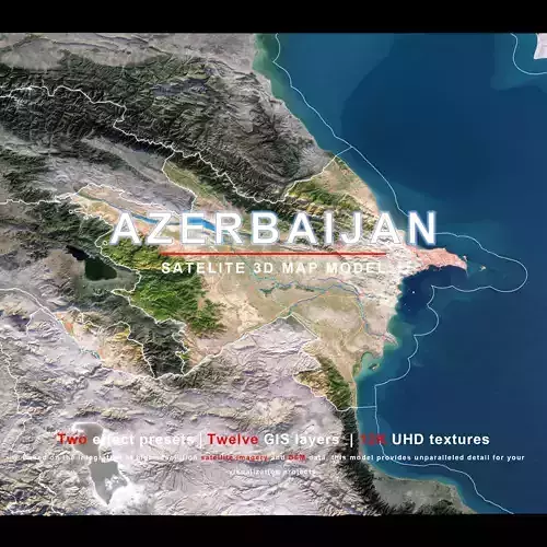 The model includes satellite imagery and masks. The masks are primarily used in material blending to adjust the material representation based on different geographical data. We provide texture maps in both 8K and 12K resolutions.