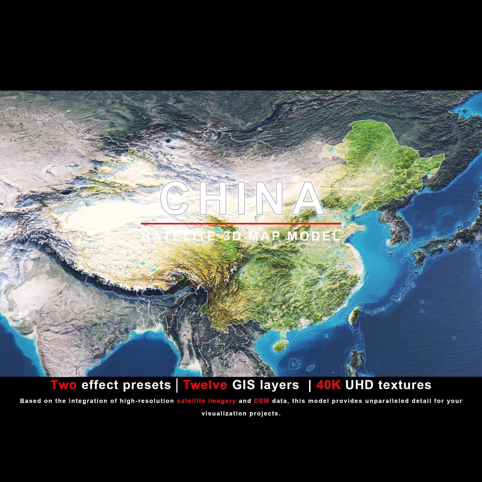 The model includes satellite imagery and masks. The masks are primarily used in material blending to adjust the material representation based on different geographical data. We provide texture maps in both 8K and 40K resolutions.