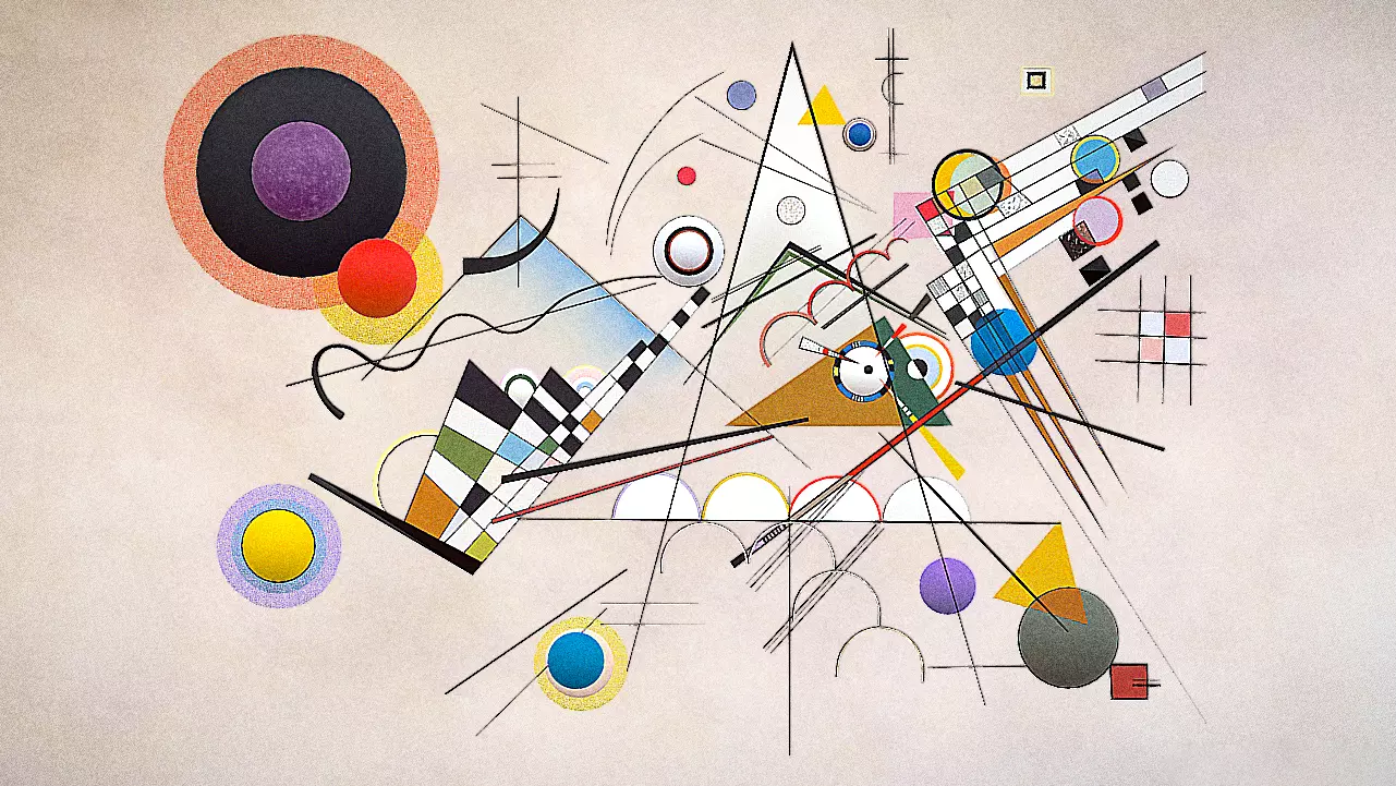 The audience was quite shocked by the transition from the apocalyptic emotion of Composition VII to the geometric rhythm of Composition VIII. “Composition VIII” was painted ten years later in 1923. It is a logical development of the creative genius of the painter and to a certain extent it reflects the influence of Suprematism and Constructivism assimilated by Kandinsky in Russia and in the Bauhaus.