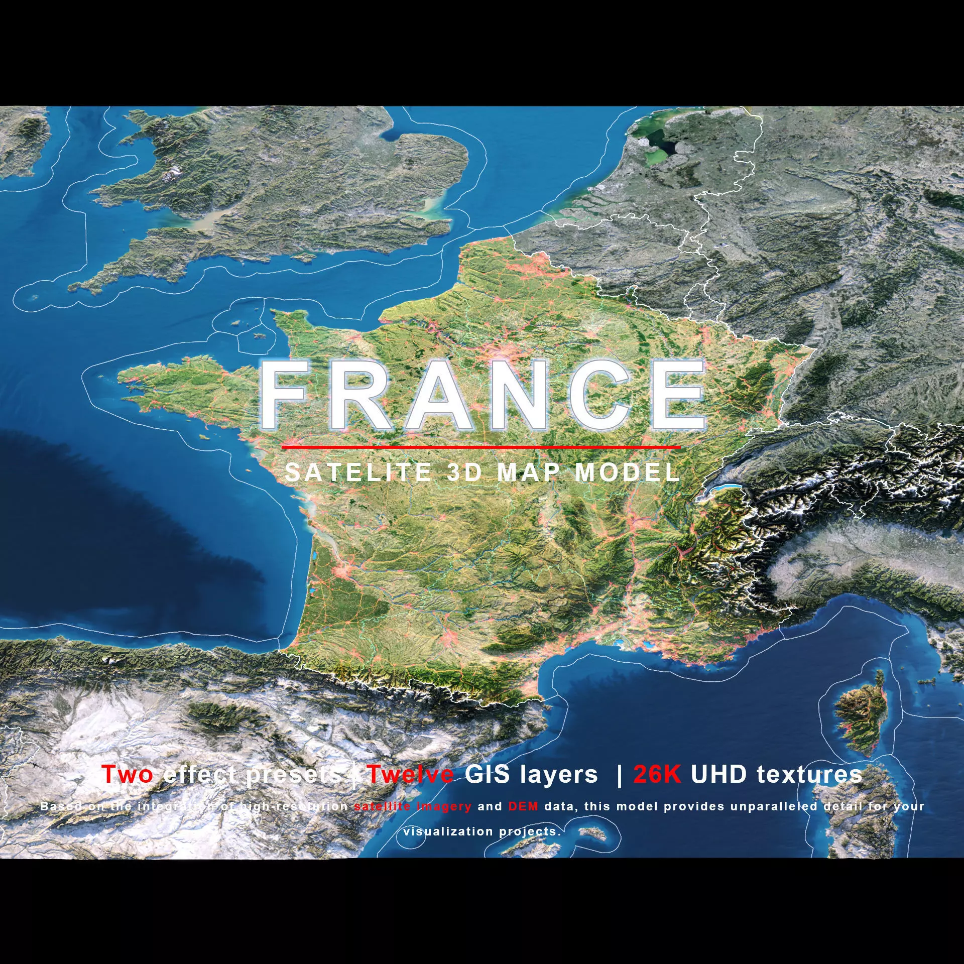 The model includes satellite imagery and masks. The masks are primarily used in material blending to adjust the material representation based on different geographical data. We provide texture maps in both 8K and 26K resolutions.