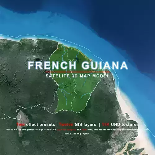 The model includes satellite imagery and masks. The masks are primarily used in material blending to adjust the material representation based on different geographical data. We provide texture maps in both 8K and 11K resolutions.
