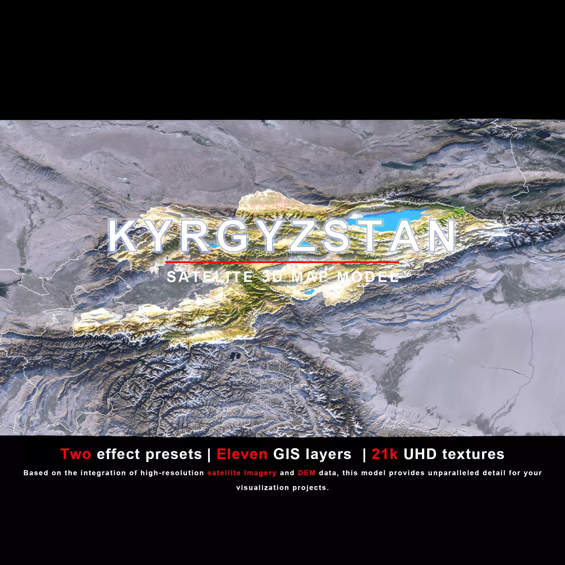 The model includes satellite imagery and masks. The masks are primarily used in material blending to adjust the material representation based on different geographical data. 8K/21K indicates that the texture maps we provide have resolutions of 8192 pixels and ≥ 21000 pixels, respectively.